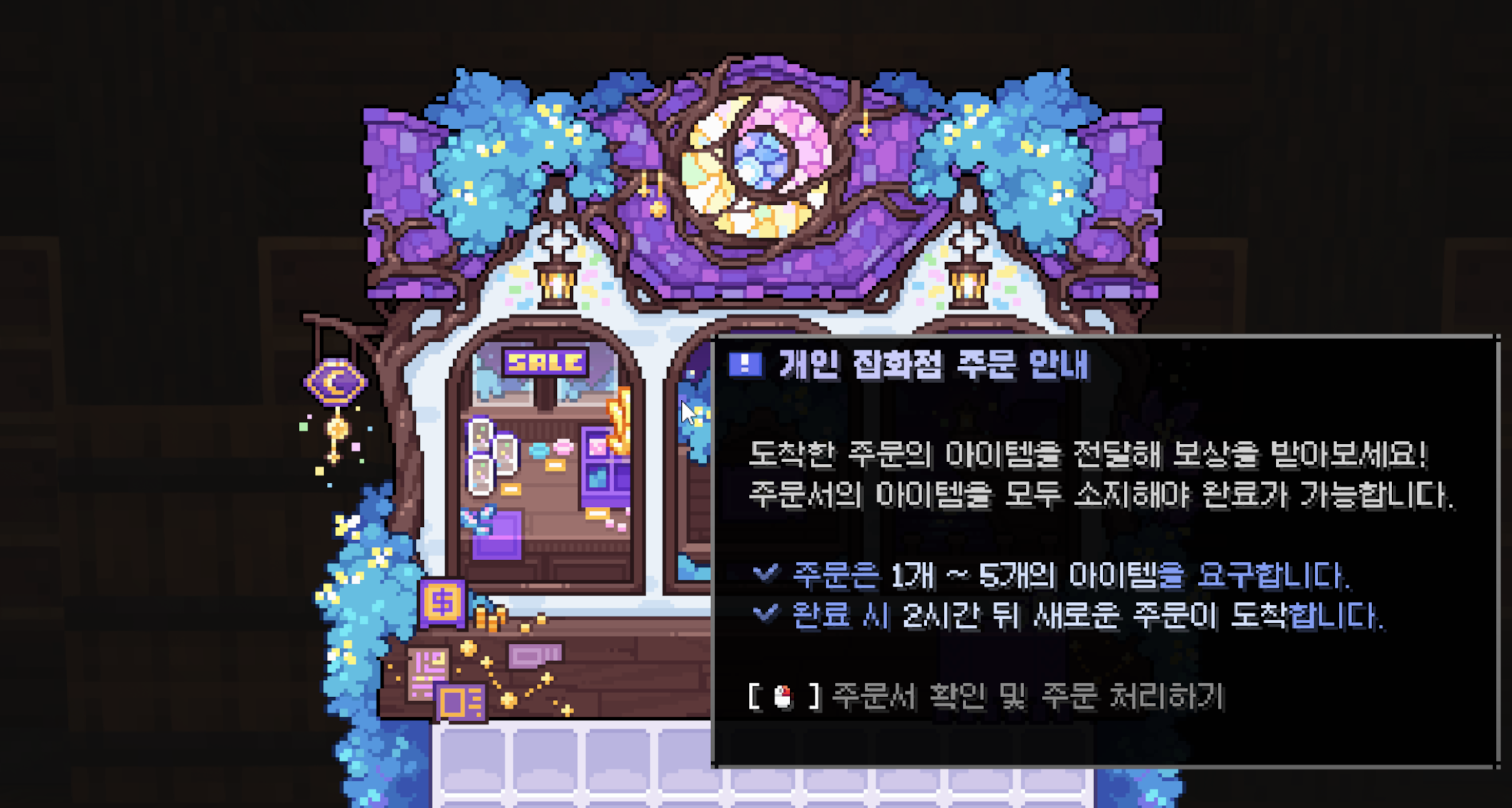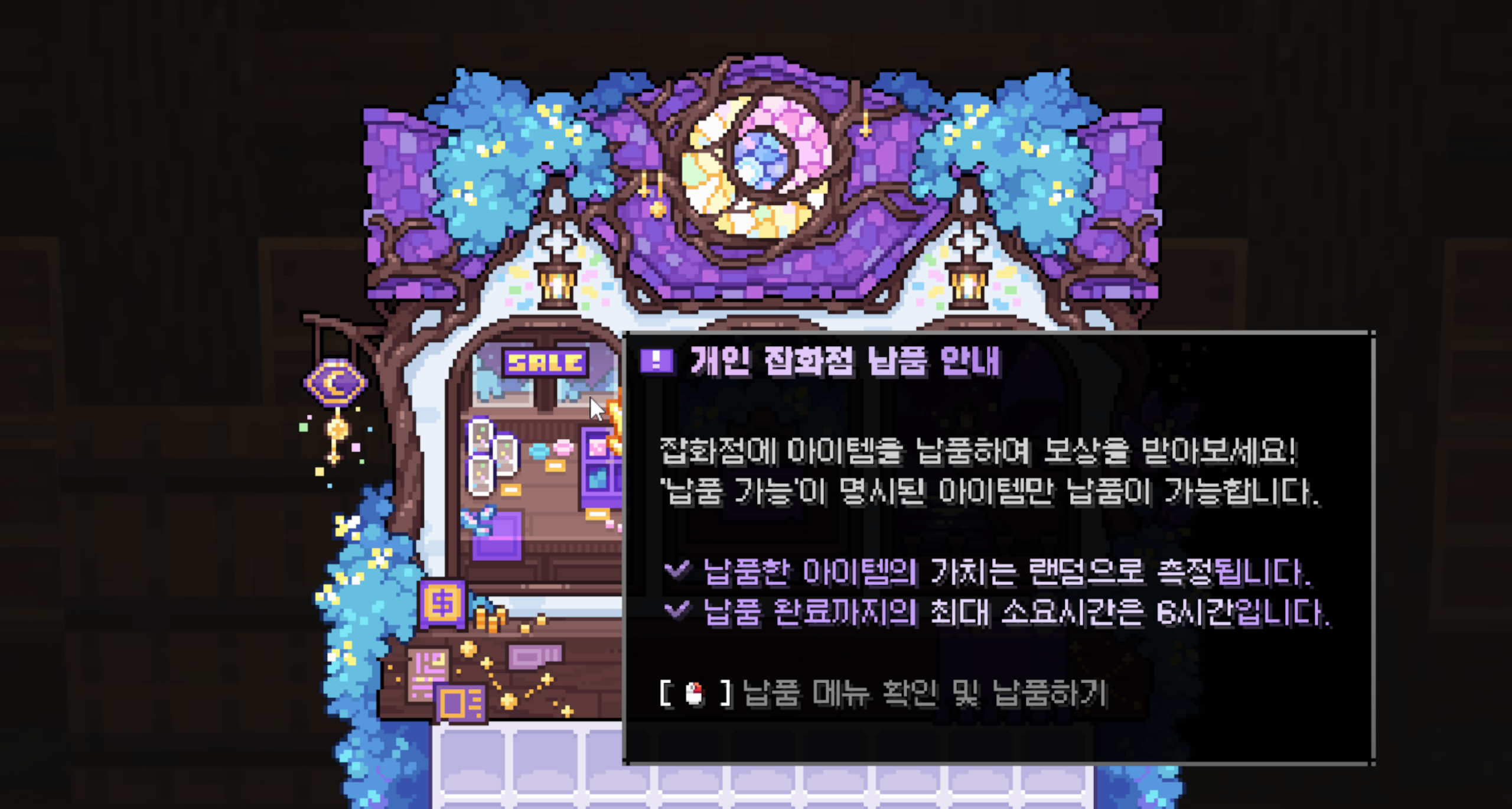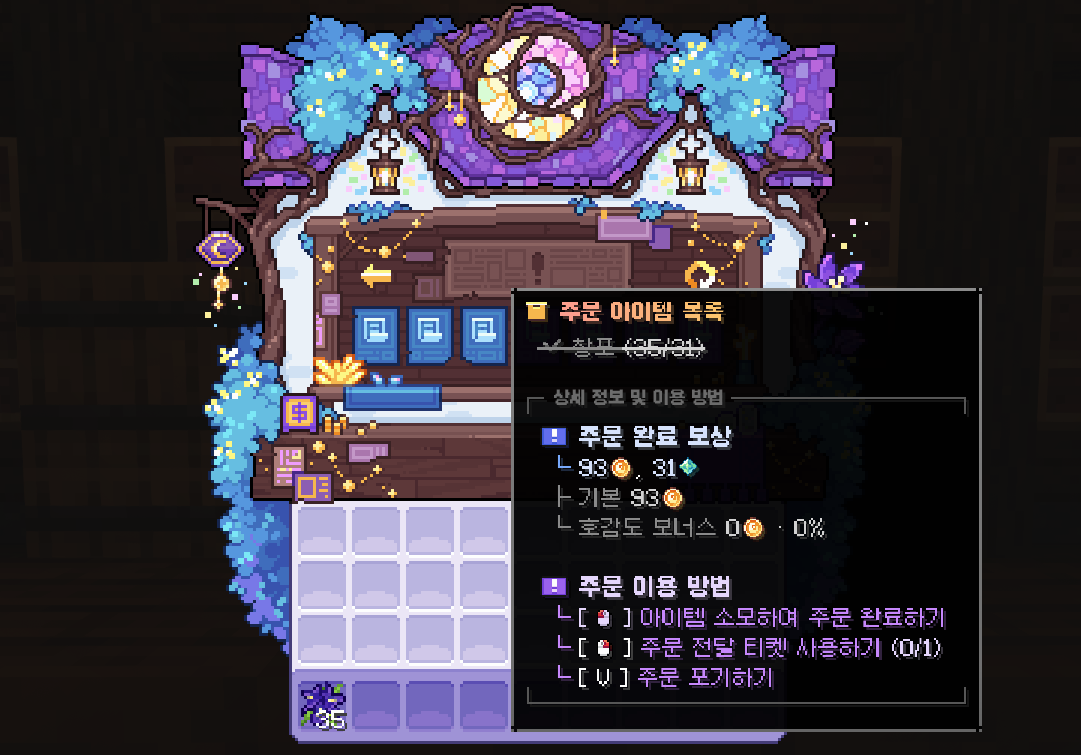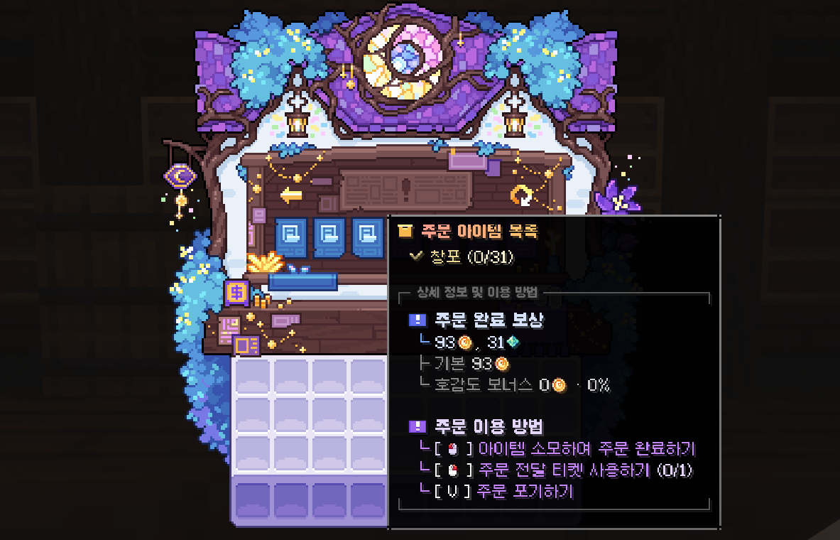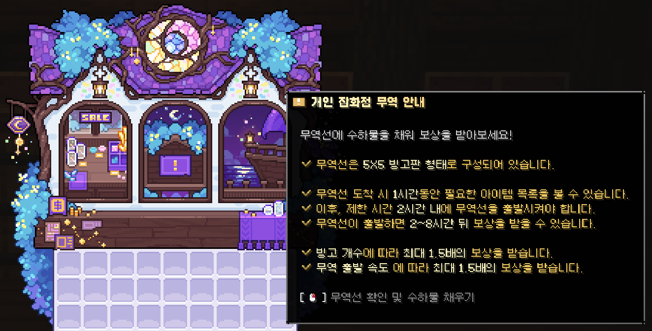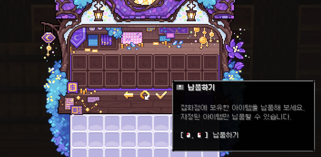 1. 잡화점 관리인 이안에게 대화를 요청해 잡화점 메뉴를 엽니다.