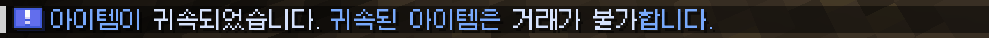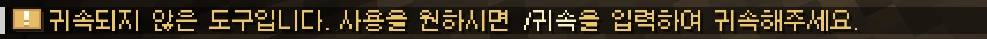 귀속이 필요한 장비를 귀속하지 않고 사용하려고 하면, 다음과 같은 경고 문구가 출력됩니다.