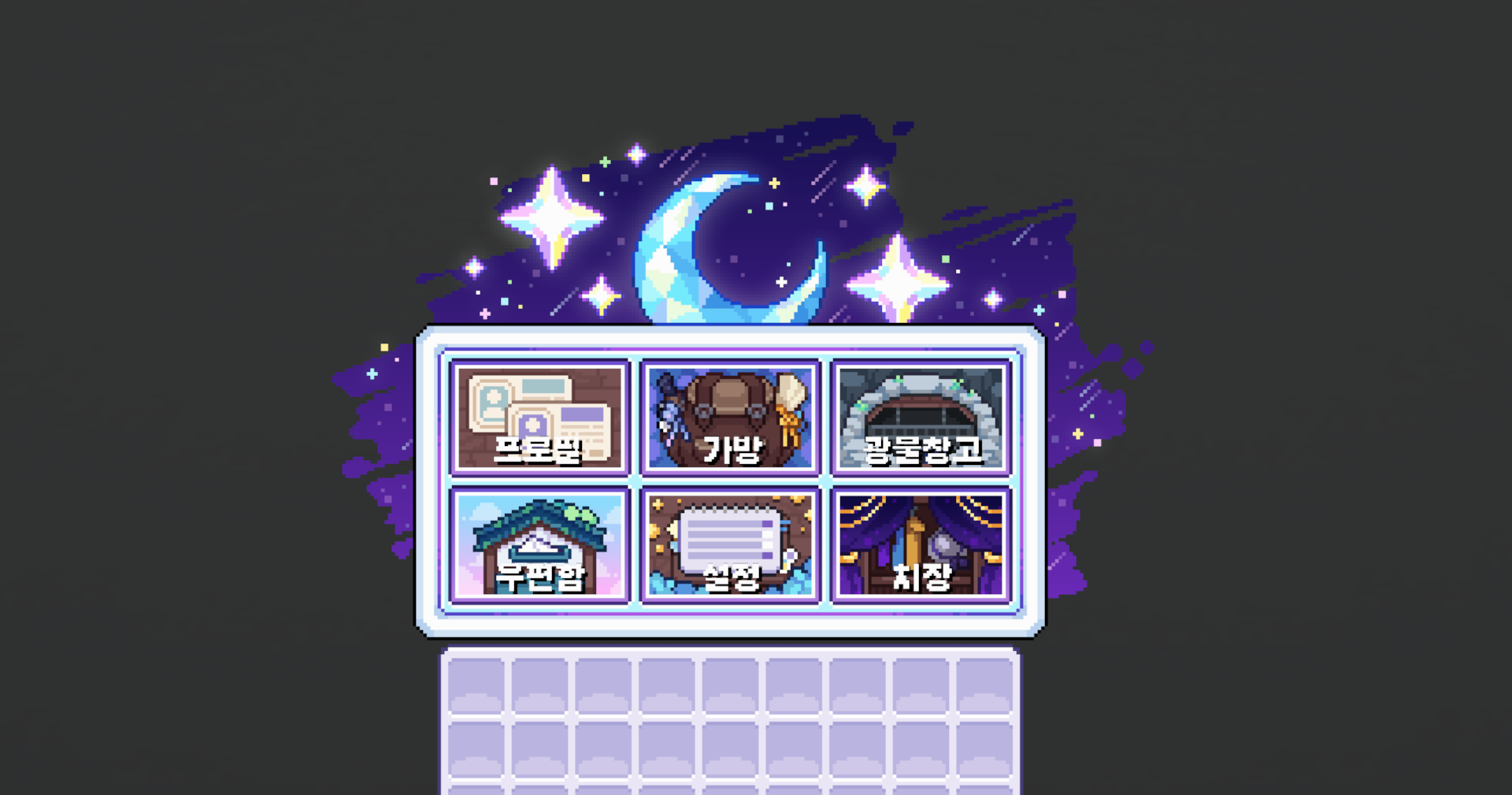 내 정보 메뉴에서는 프로필, 가방, 광물창고, 우편함, 설정, 치장 기능을 이용할 수 있습니다.