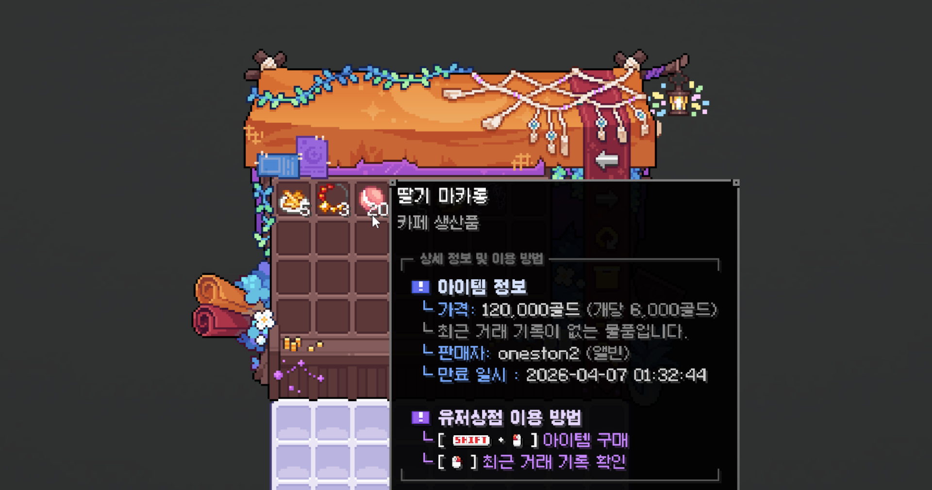 유저 상점은 유저들 간의 자유로운 거래를 지원하는 시스템으로, 다른 유저에게 아이템을 판매하거나, 다른 유저가 판매하는 아이템을 구매할 수 있는 커뮤니티 장터입니다.