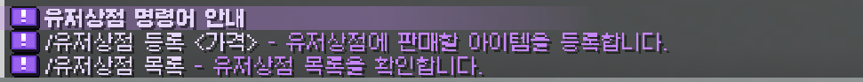 /유저상점명령어를 입력하면 유저상점 관련 커맨드를 확인할 수 있습니다.