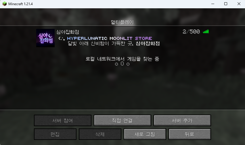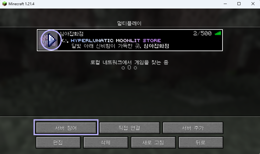1.21.4인경우, 심야잡화점 서버 접속 방법으로 넘어갑니다.선택된 버전이